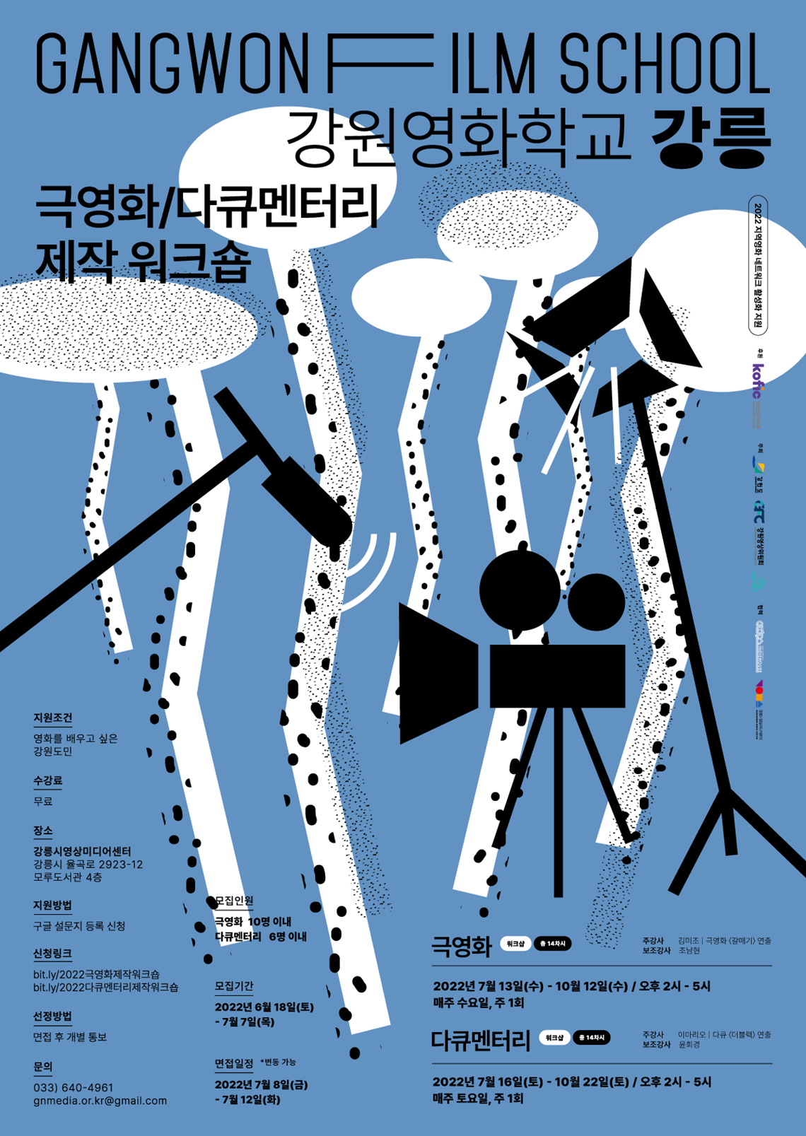 🍉 '강원영화학교 강릉'이 시작되었습니다. 2022년 지역영화네트워크 활성화 지원사업의 일환으로 진행되는 이번 사업은 극영화와 다큐멘터리 제작워크숍으로 강릉, 원주, 춘천에서 동시에 진행됩니다. 올해 극영화제작워크숍은 <갈매기>를 연출한 김미조 감독이 주강사를, <심장의 벌레>를 연출한 한원영 감독이 보조강사로 참여합니다. 다큐멘터리제작워크숍은 <더블랙>의 이마리오 감독이 주강사를, <부동>의 윤희경 감독이 보조강사로 참여합니다. 워크숍은 강릉시영상미디어센터에서 진행됩니다. 자세한내용보기(클릭) |