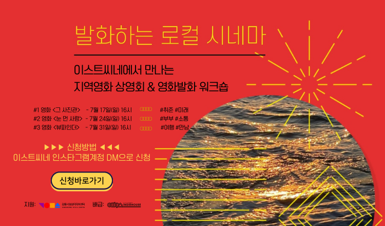 강릉 정동진 영화서점 이스트씨네에서 만나는 지역영화 상영회 & 영화발화 워크숍 <발화하는 로컬 시네마> 프로그램이 7월, 매주 일요일마다 진행됩니다!